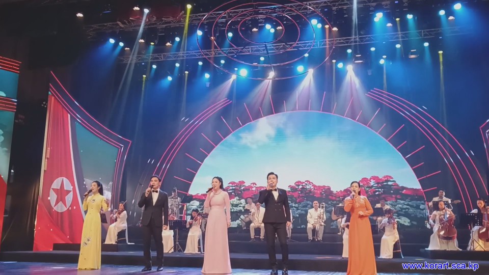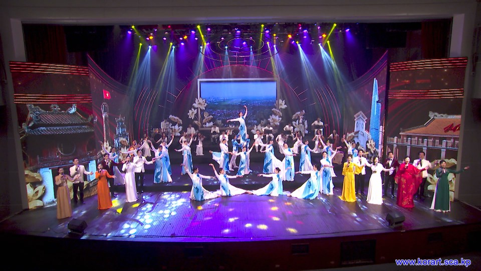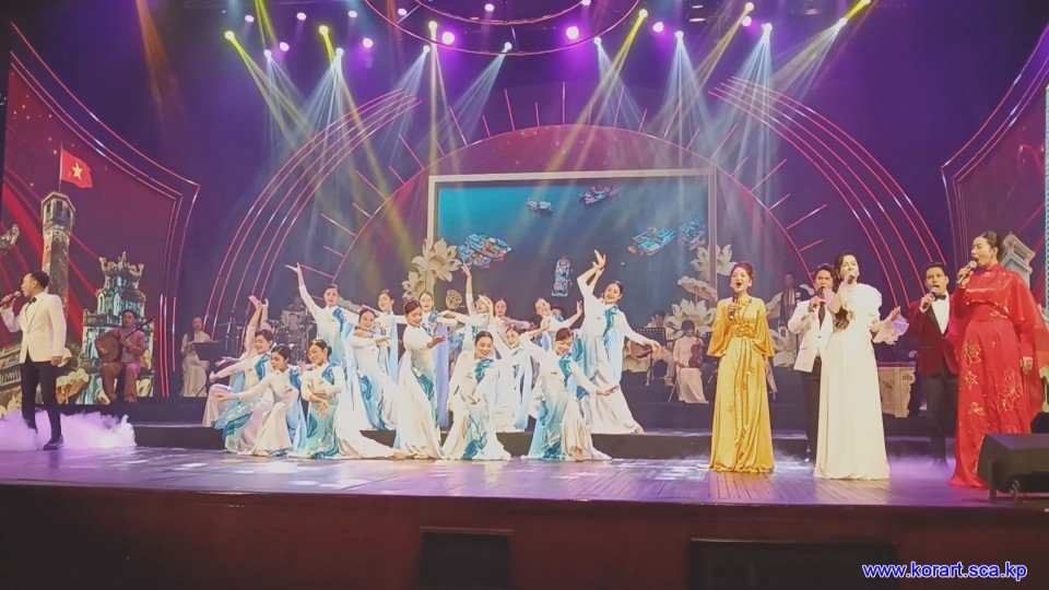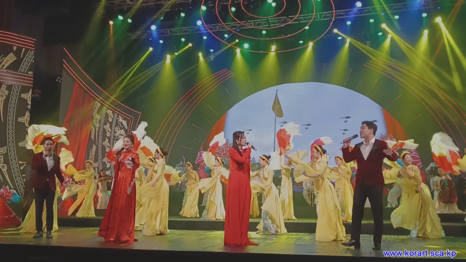 제34차 4월의 봄 친선예술축전에 훌륭한 작품을 내놓기 위해 준비사업에 최대의 성의를 다하고있는 윁남국가가무극장예술단의 예술인들입니다. 예술단에서는 이번 축전무대를 특색있게 장식하기 위하여 조선노래형상을 비롯한 공연준비사업에 큰 힘을 넣고있습니다.