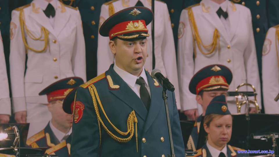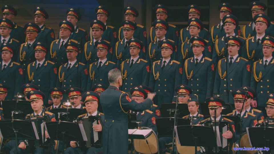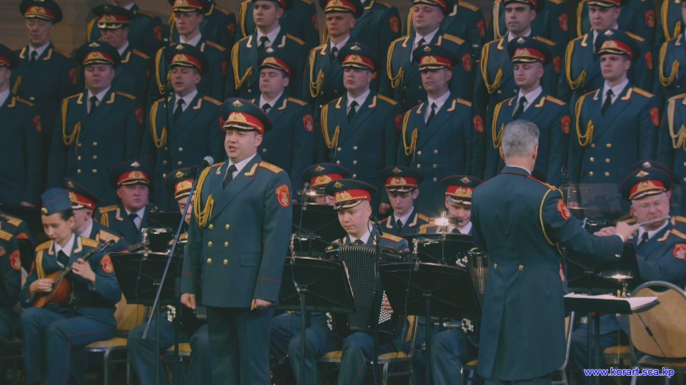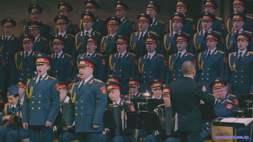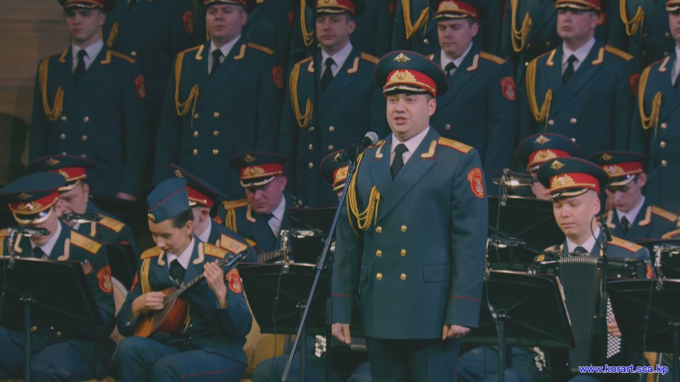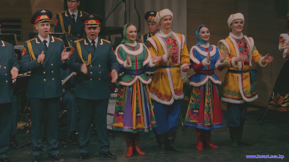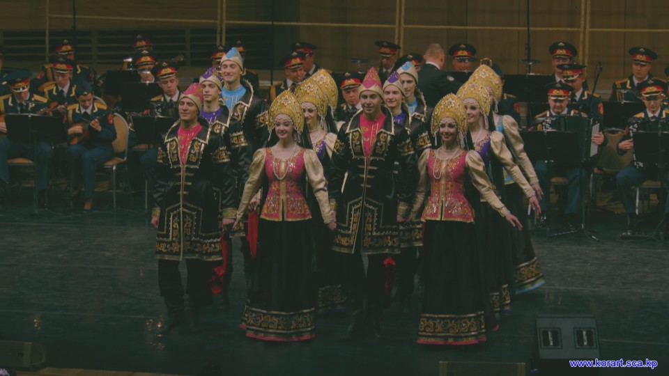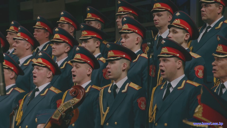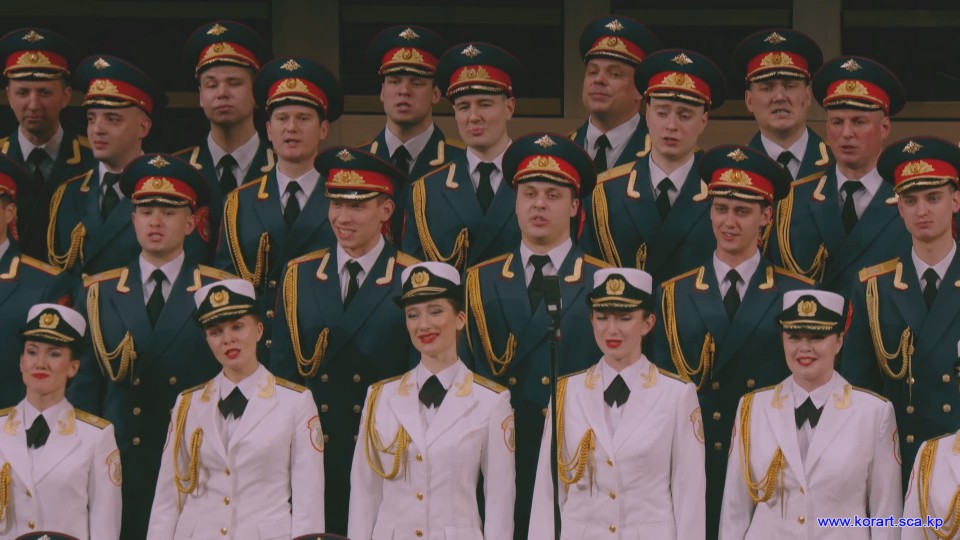 제34차 4월의 봄 친선예술축전에 참가한 알렉싼드로브명칭 로씨야군대아까데미야협주단의 예술인들은 높은 예술적기량으로 축전무대를 이채롭게 장식하였습니다. 협주단에서는 혼성중창 《내 운명의 품》(조선노래)을 비롯하여 성의껏 준비한 공연종목들로 조선인민에게 깊은 감명을 안겨주었습니다.