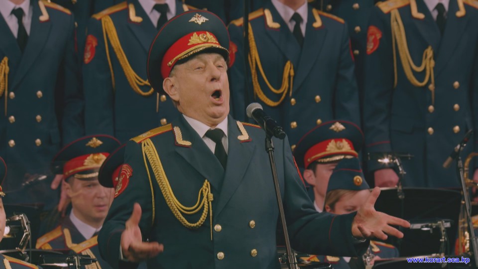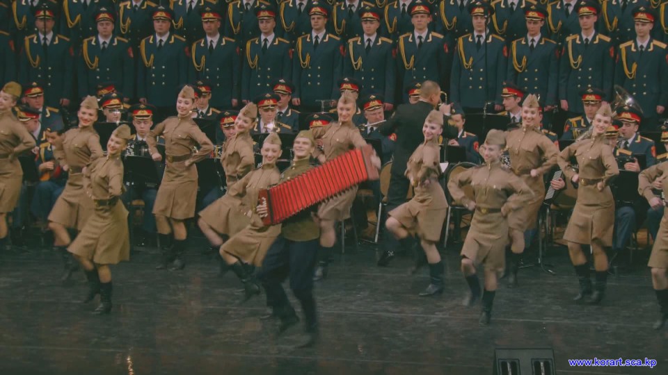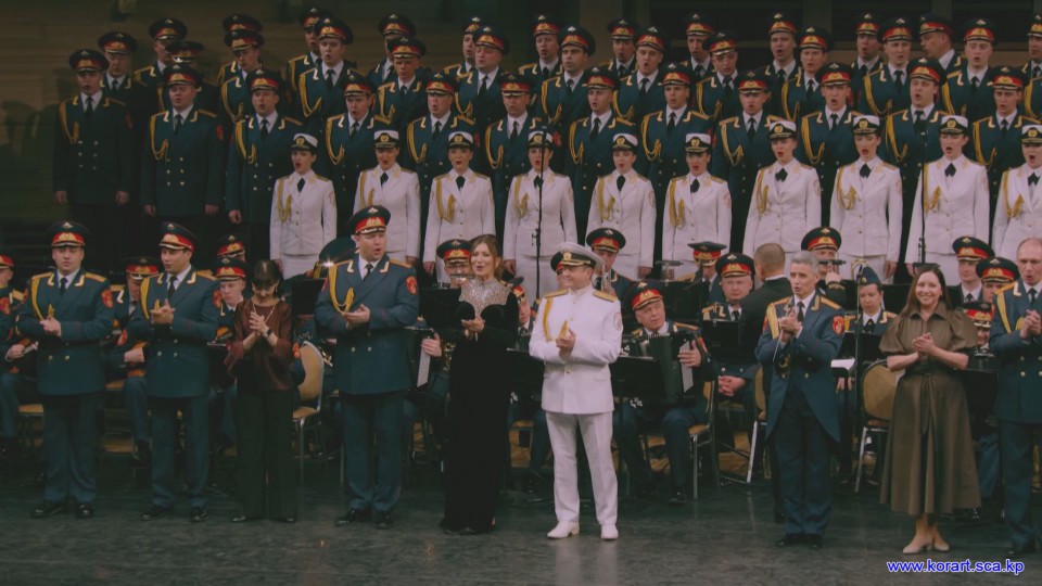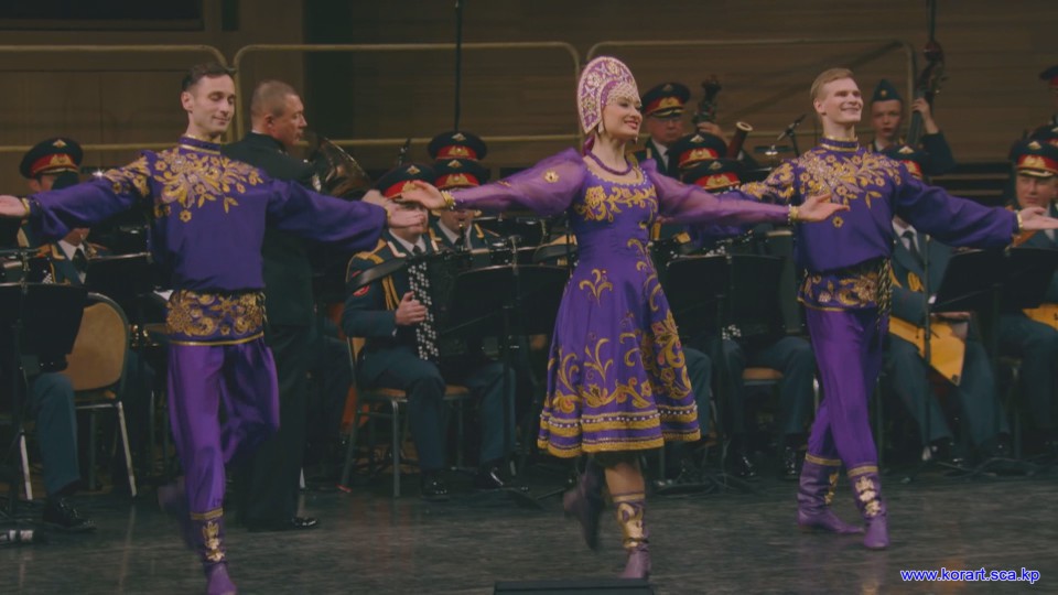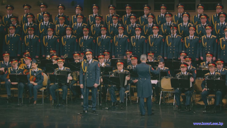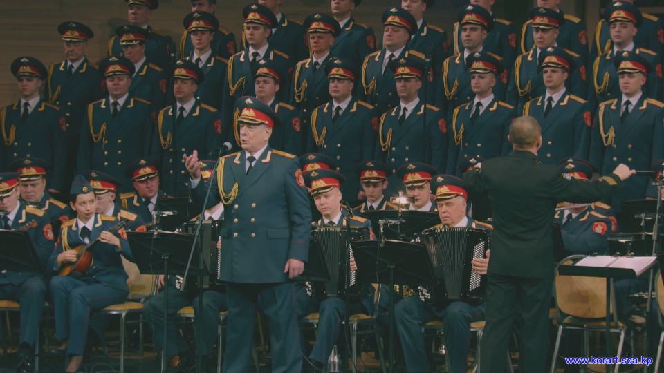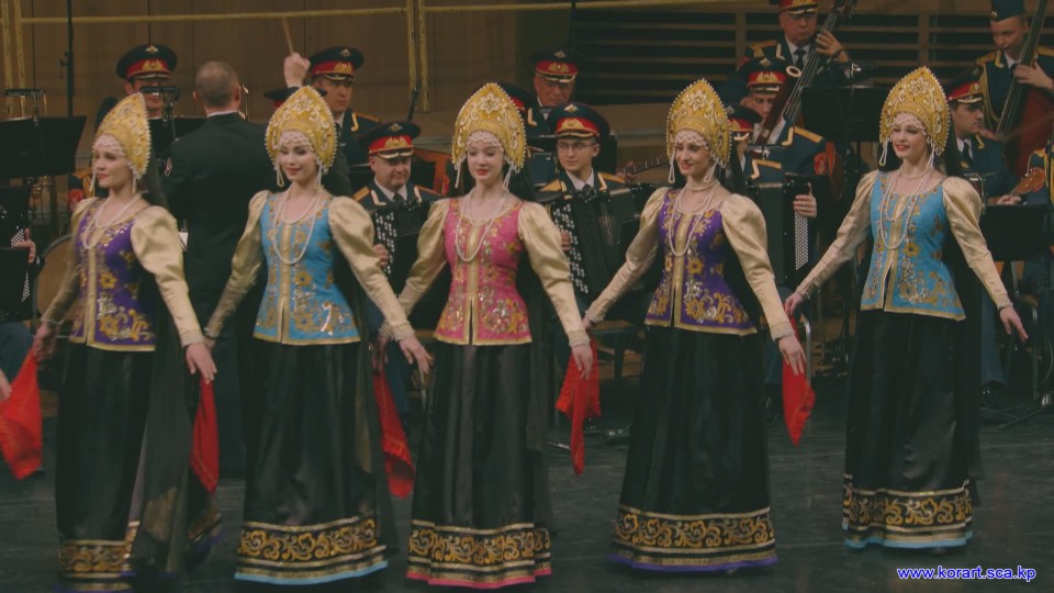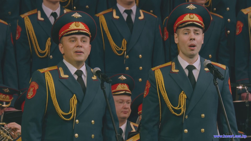 제34차 4월의 봄 친선예술축전에 참가한 알렉싼드로브명칭 로씨야군대아까데미야협주단의 예술인들은 높은 예술적기량으로 축전무대를 이채롭게 장식하였습니다. 협주단에서는 혼성중창 《내 운명의 품》(조선노래)을 비롯하여 성의껏 준비한 공연종목들로 조선인민에게 깊은 감명을 안겨주었습니다.
