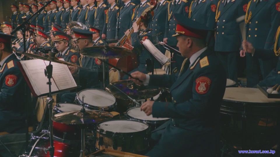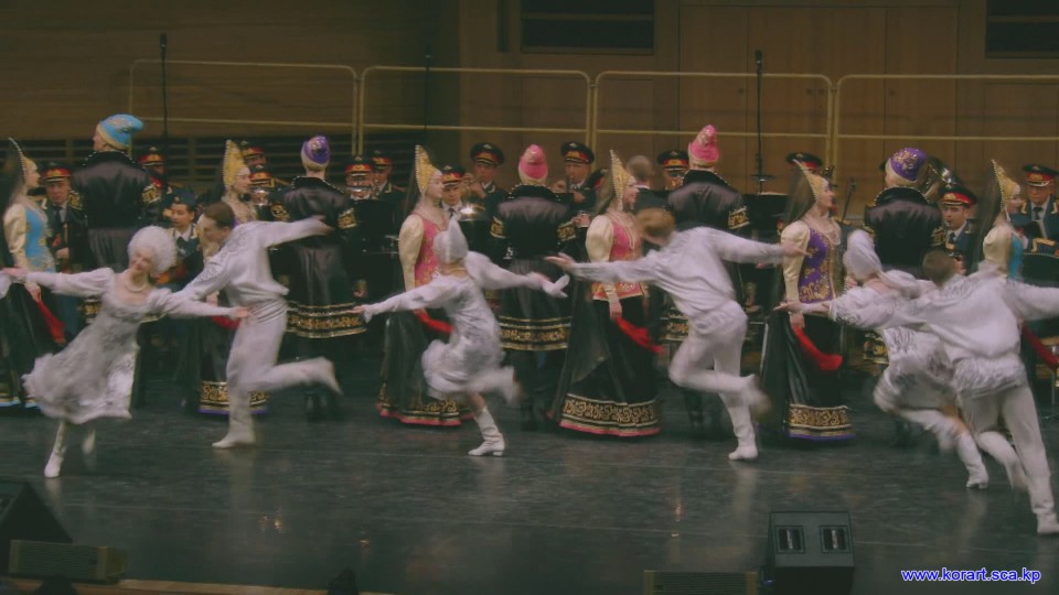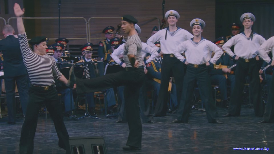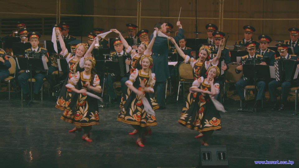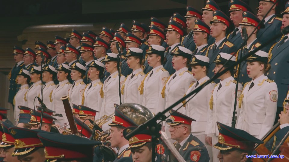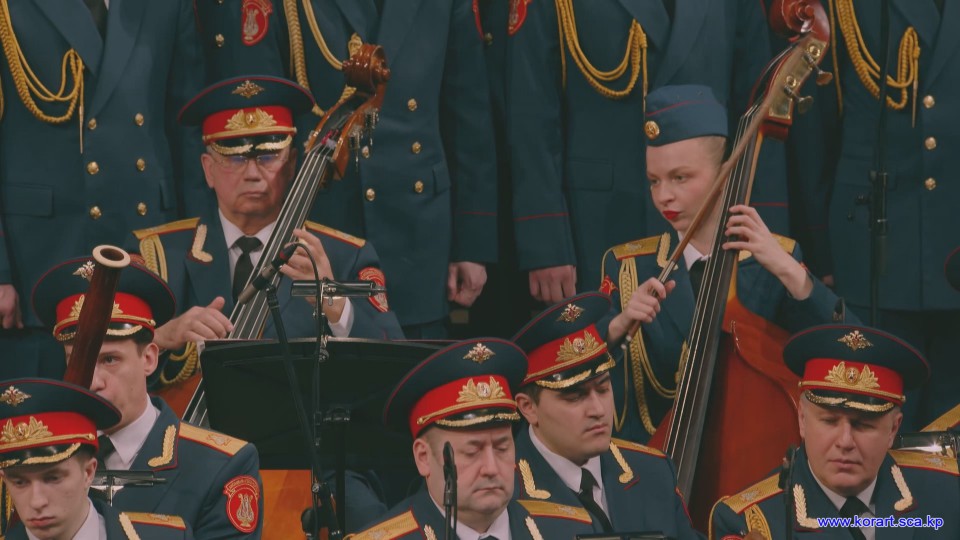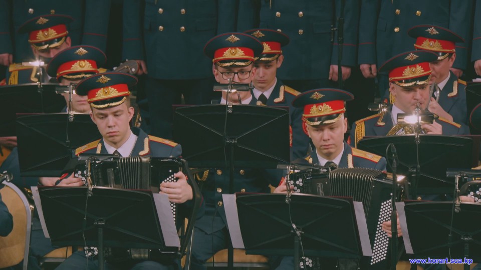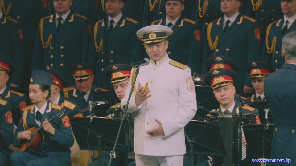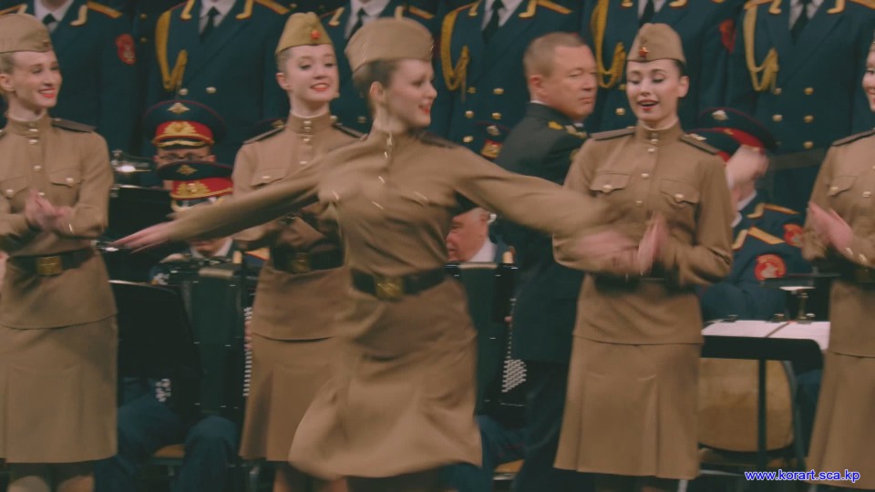 제34차 4월의 봄 친선예술축전에 참가한 알렉싼드로브명칭 로씨야군대아까데미야협주단의 예술인들은 높은 예술적기량으로 축전무대를 이채롭게 장식하였습니다. 협주단에서는 혼성중창 《내 운명의 품》(조선노래)을 비롯하여 성의껏 준비한 공연종목들로 조선인민에게 깊은 감명을 안겨주었습니다.