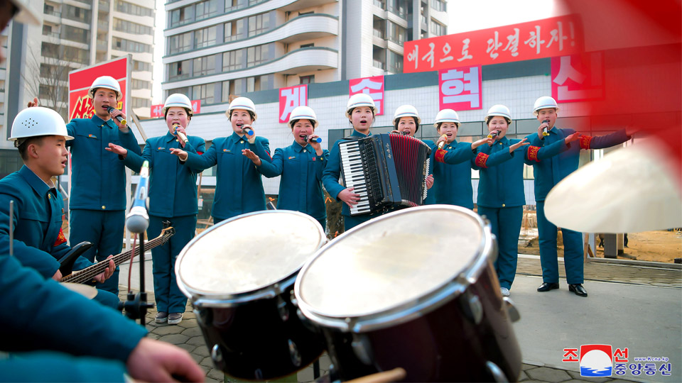 사회주의전면적발전을 이룩하기 위한 투쟁이 힘있게 벌어지는 조국땅 이르는 곳마다에서 혁명의 노래가 높이 울려퍼지고있습니다.