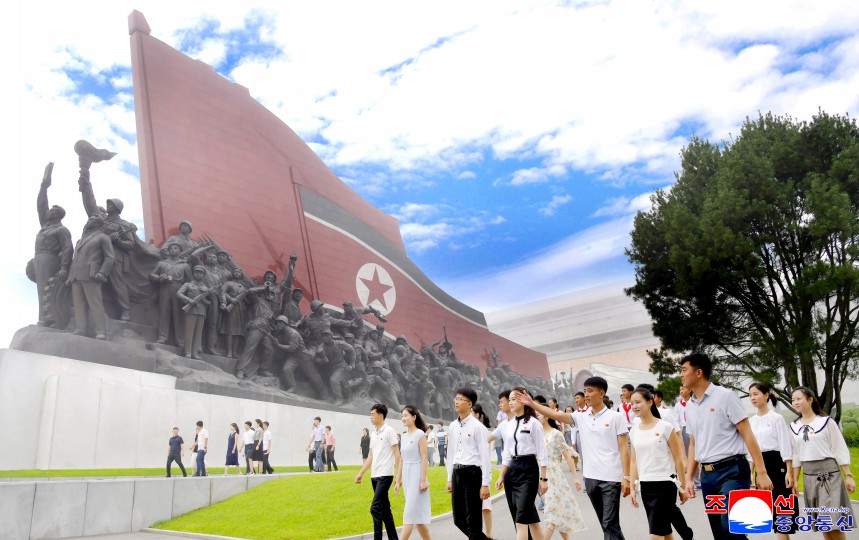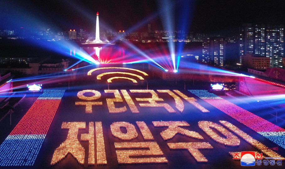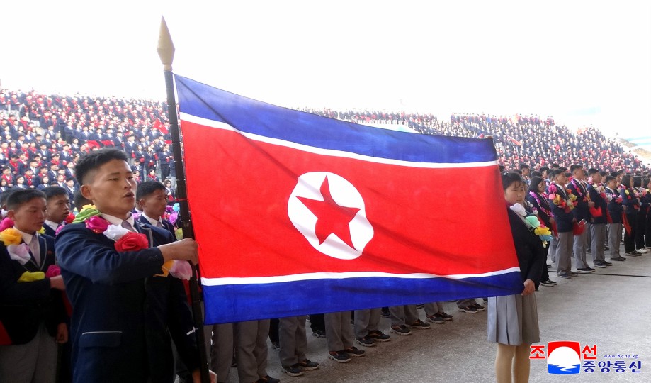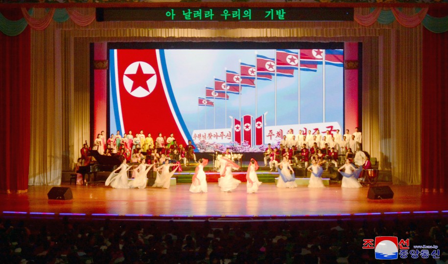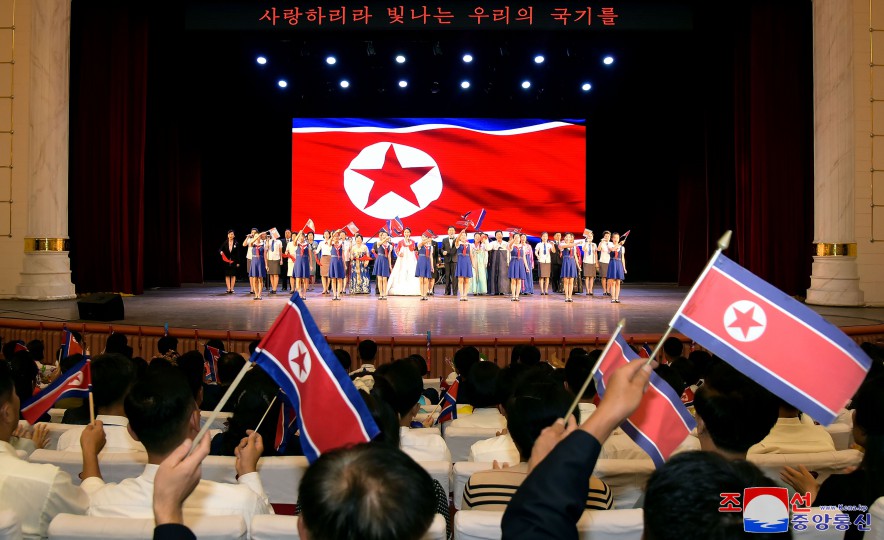 맑고 푸른 내 조국의 하늘가에 세차게 나붓기는 우리의 국기. 그 기폭아래 이 세상 모든 행복을 다 독차지한듯 기쁨에 넘쳐있는 인민들의 밝은 모습… 창공높이 휘날리는 국기를 바라보며 내 조국의 강대함과 창창한 래일을 가슴벅차게 안아보는 우리 인민은 누구나 절감하고있습니다. 아름다운 꿈과 희망, 이 땅의 모든 삶은 바로 우리의 국기아래 있다는것을.