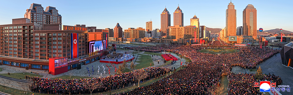 Блестяще перевыполнен план строительства жилых домов на 50 тыс. квартир в г. Пхеньяне, намеченный на VIII съезде ТПК